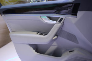Nội thất sang trọng và cao cấp với tông màu đen và xám, chất liệu da Vienna được trang bị cho ghế và taplo, viền trang trí bằng nhôm cùng với màn hình giải trí trung tâm kích thước lớn 15 inch và đèn Ambient Light 30 màu
